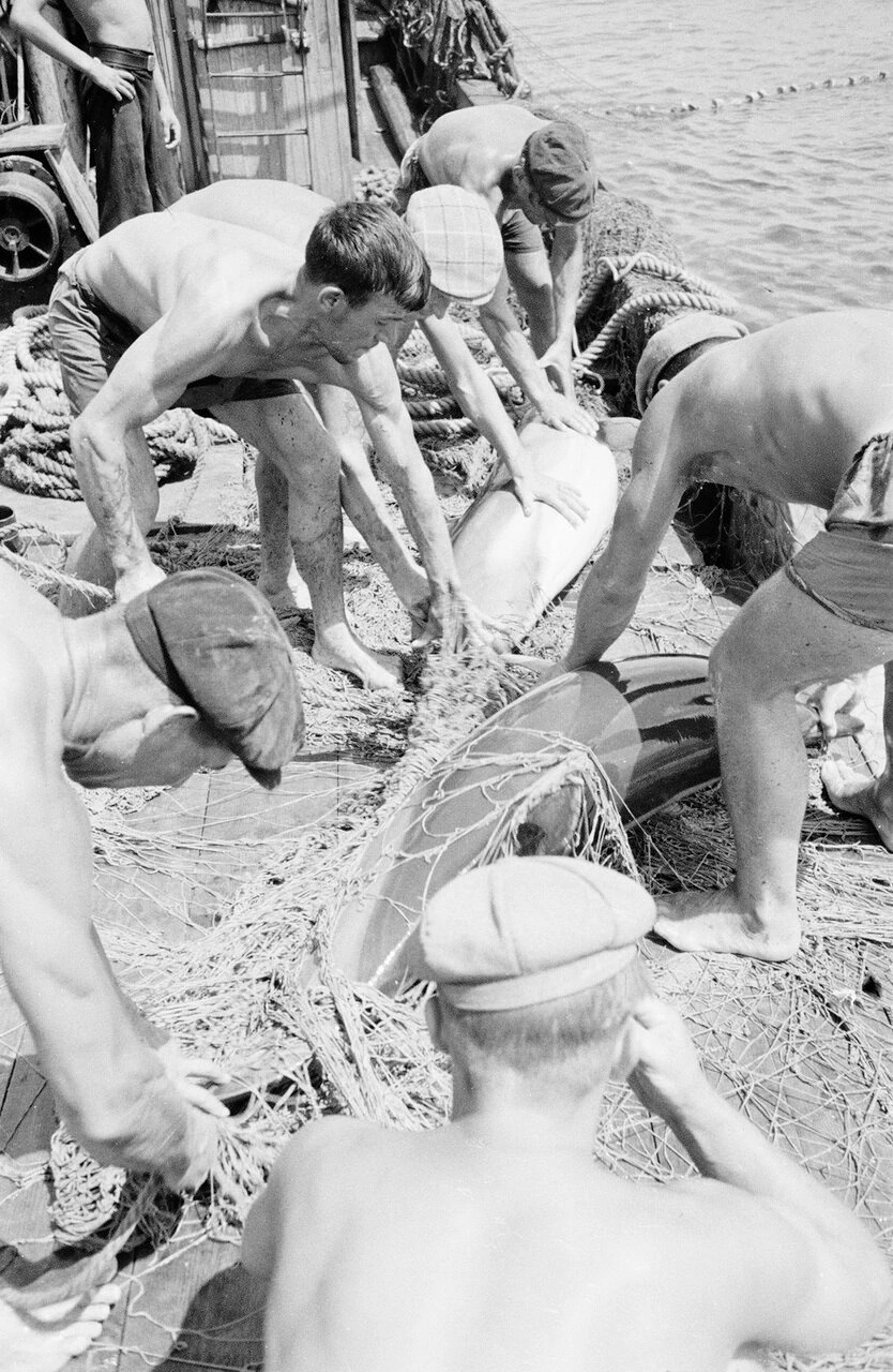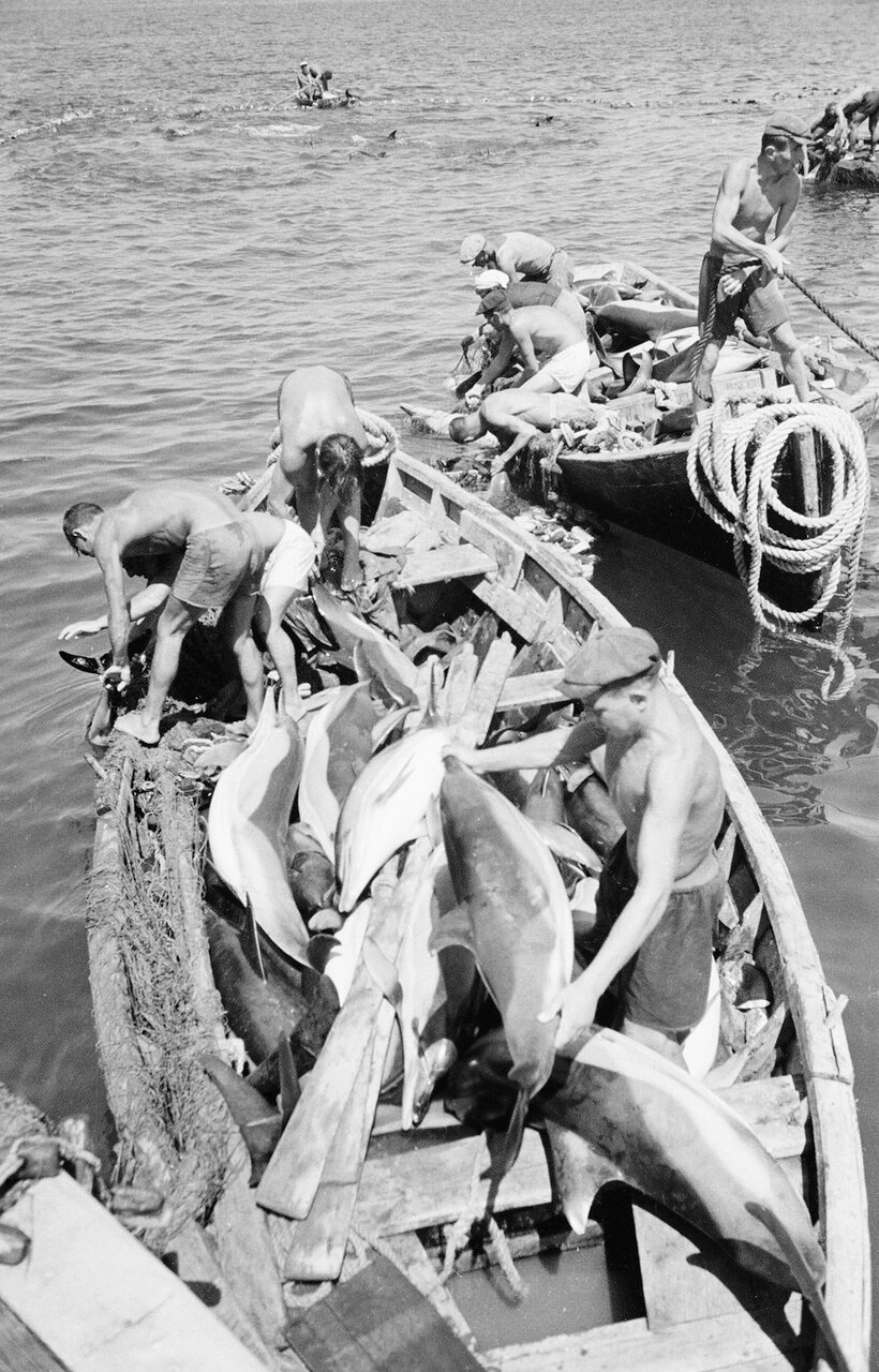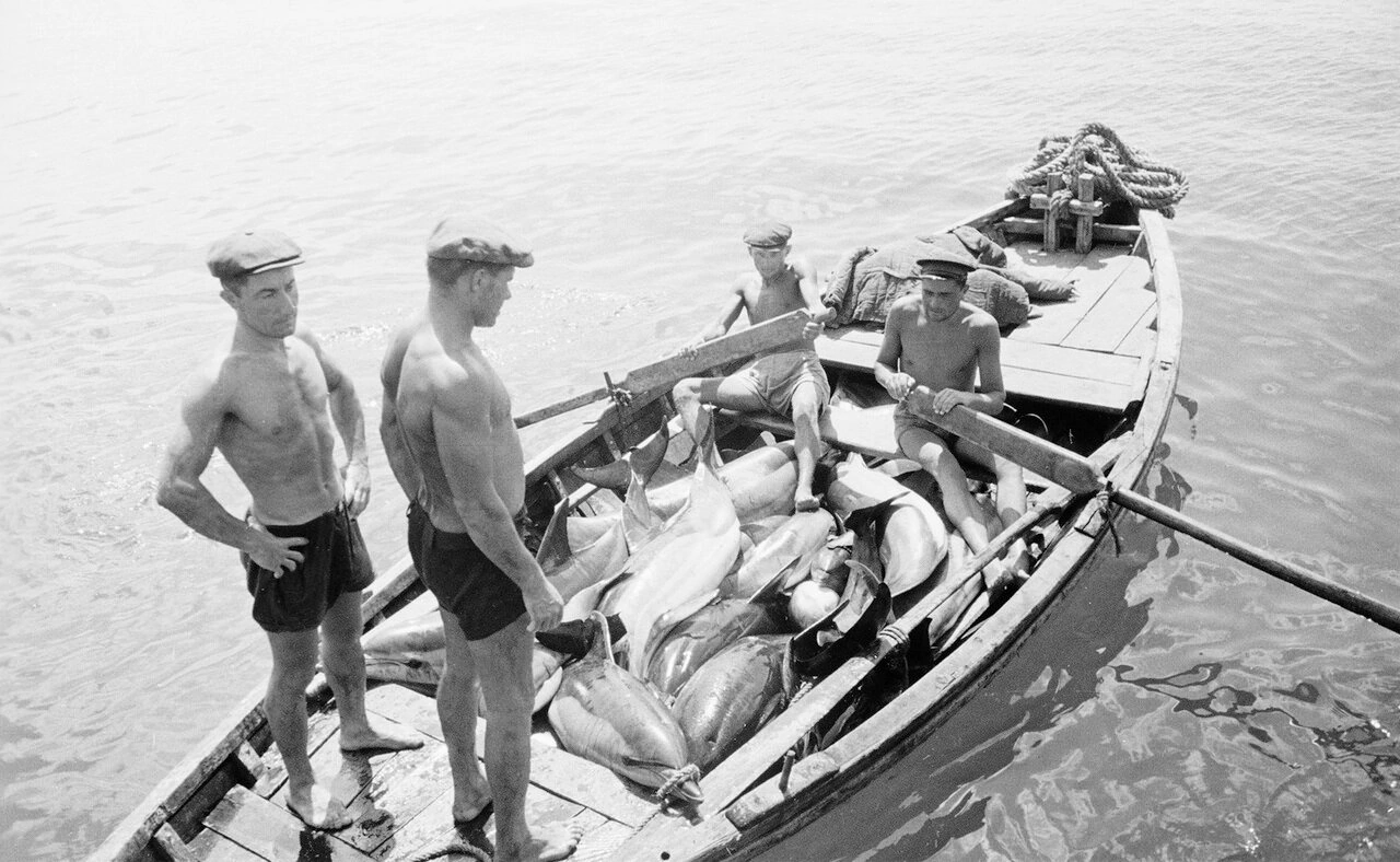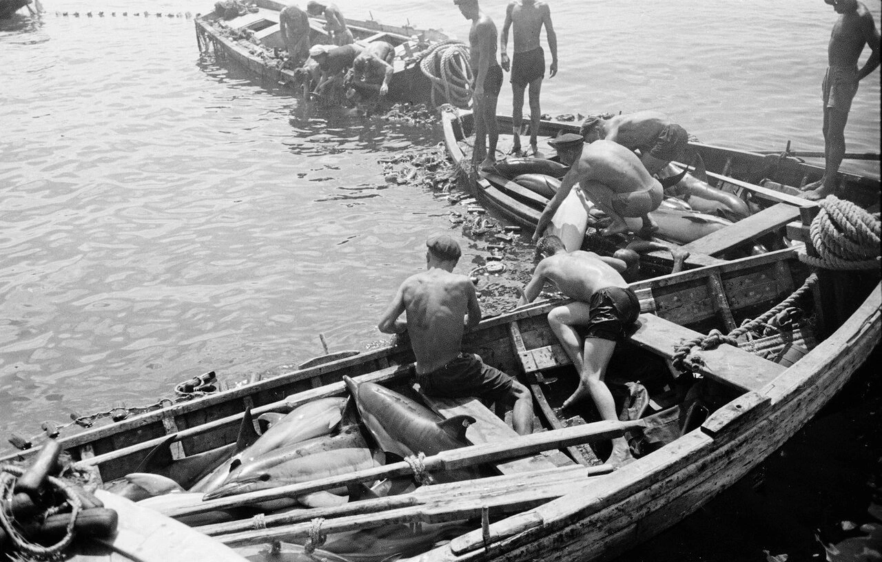 Мясо дельфинов поступало на полки в магазины после Великой Отечественной войны .