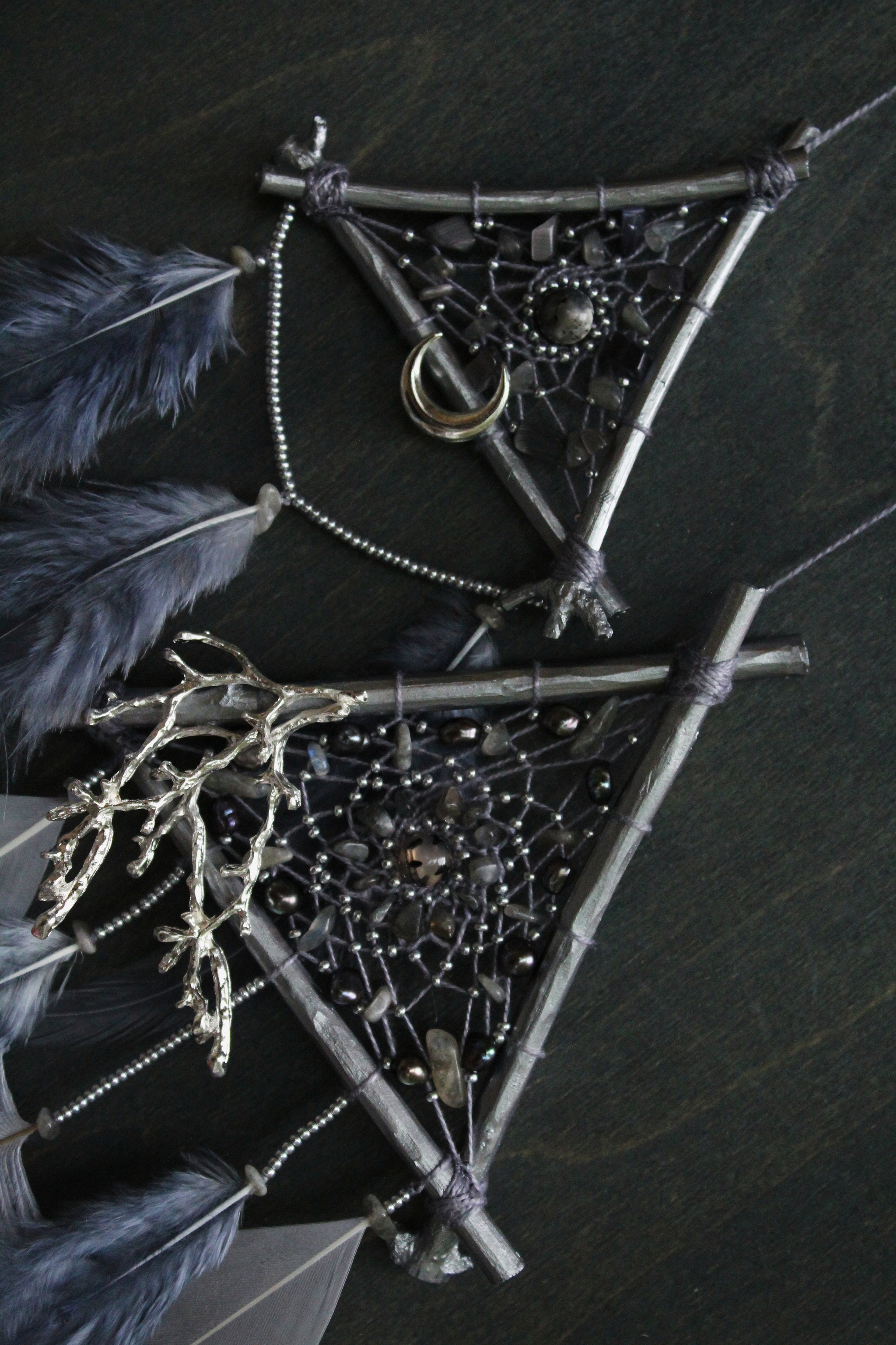 В Ловце использованы перья петуха, гуся и страуса. Основа - дерево, тонированное акрилом.