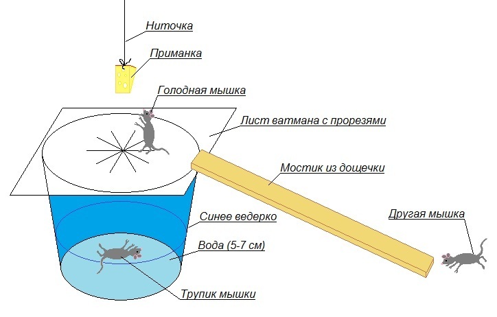 Конечно, все должно быть точно по инструкции. И не давайте голодной мышке подобраться к приманке пока у мостика не появится другая мышка.