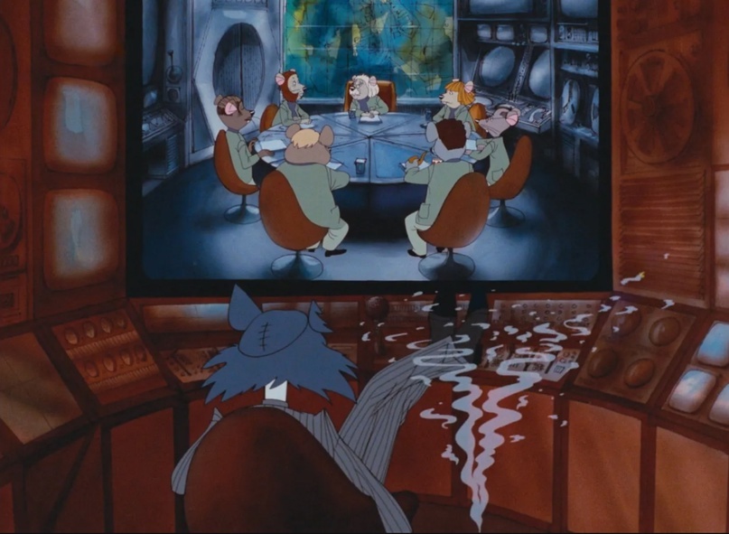 О, какая здесь шикарная рисовка! Конечно, она не выглаженно-идеальная, как у "Диснея", немного похожая на Ральфа Бакши, она сохраняет свою восточноевропейскую самобытность. Даже акварельные фоны, несмотря на свою дешевизну в некоторых сценах, создают особое ощущение. Порой кажется, это кадр не из шпионского боевика, а, скажем, из мультфильма типа "Рекса" или "Кротика". Кажется, что сейчас Грабовский точно просто поедет рыб