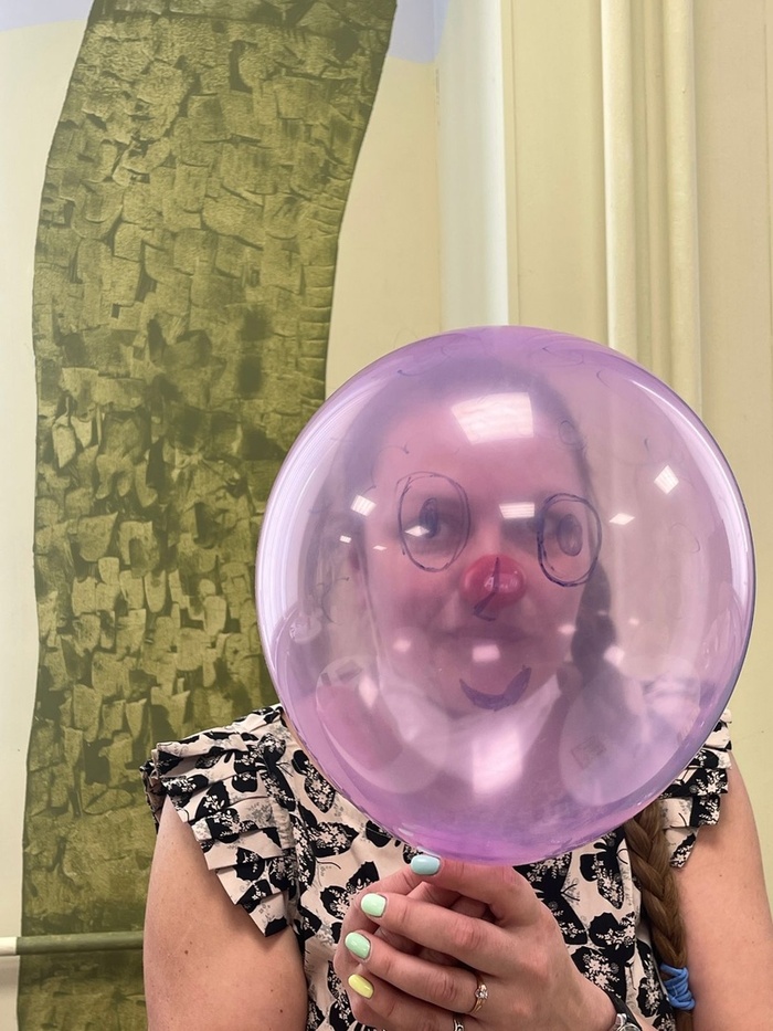 Надуваю А. зеленый шарик. Нужен ИМЕННО ЗЕЛЕНЫЙ! Ходит с шариком и гордится.