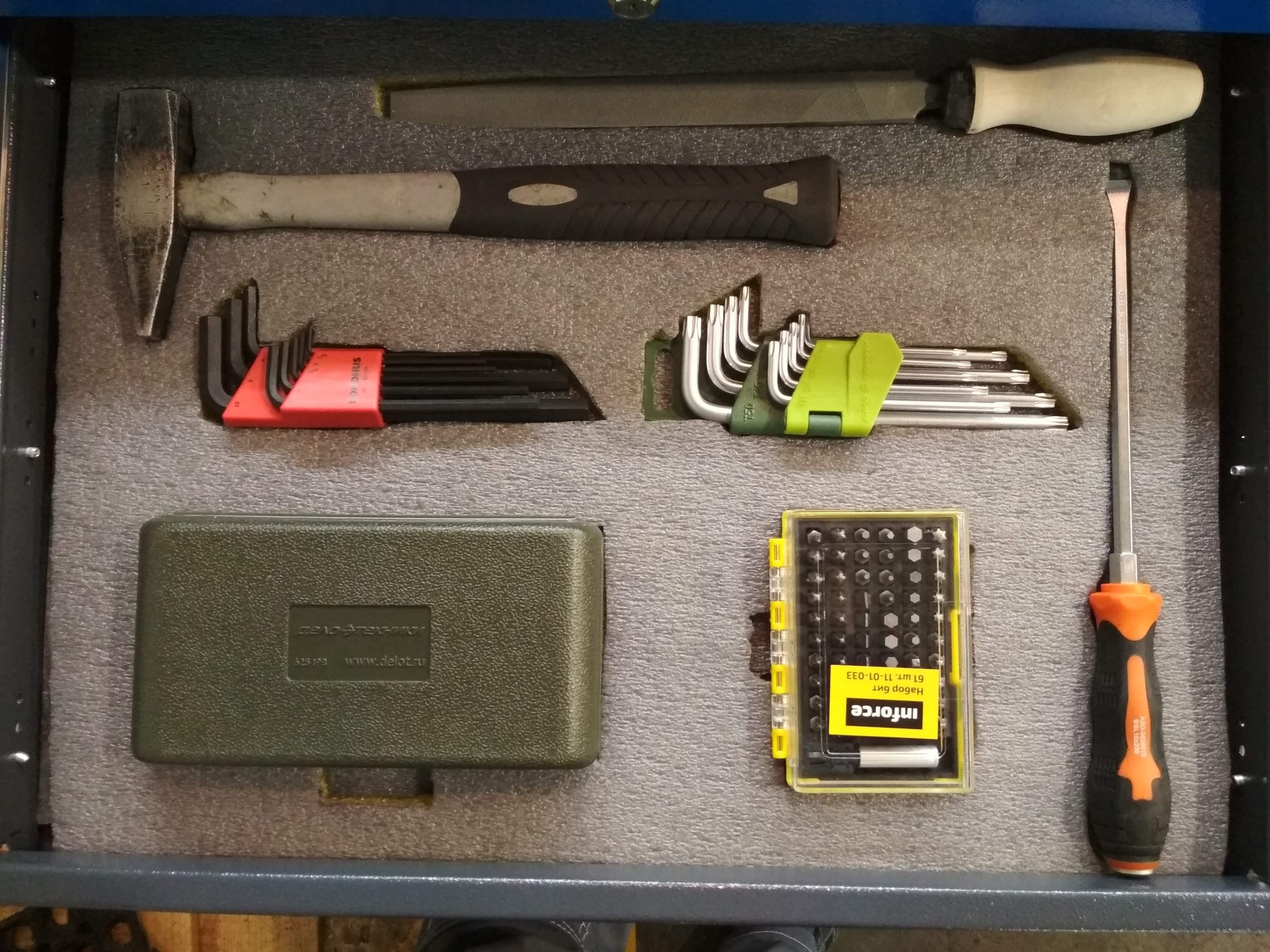Вот так получилось для ключей. Сейчас будем покупать новый набор инструмента и делать под него ложементы… Ну и сделали основной ящик тоже :)