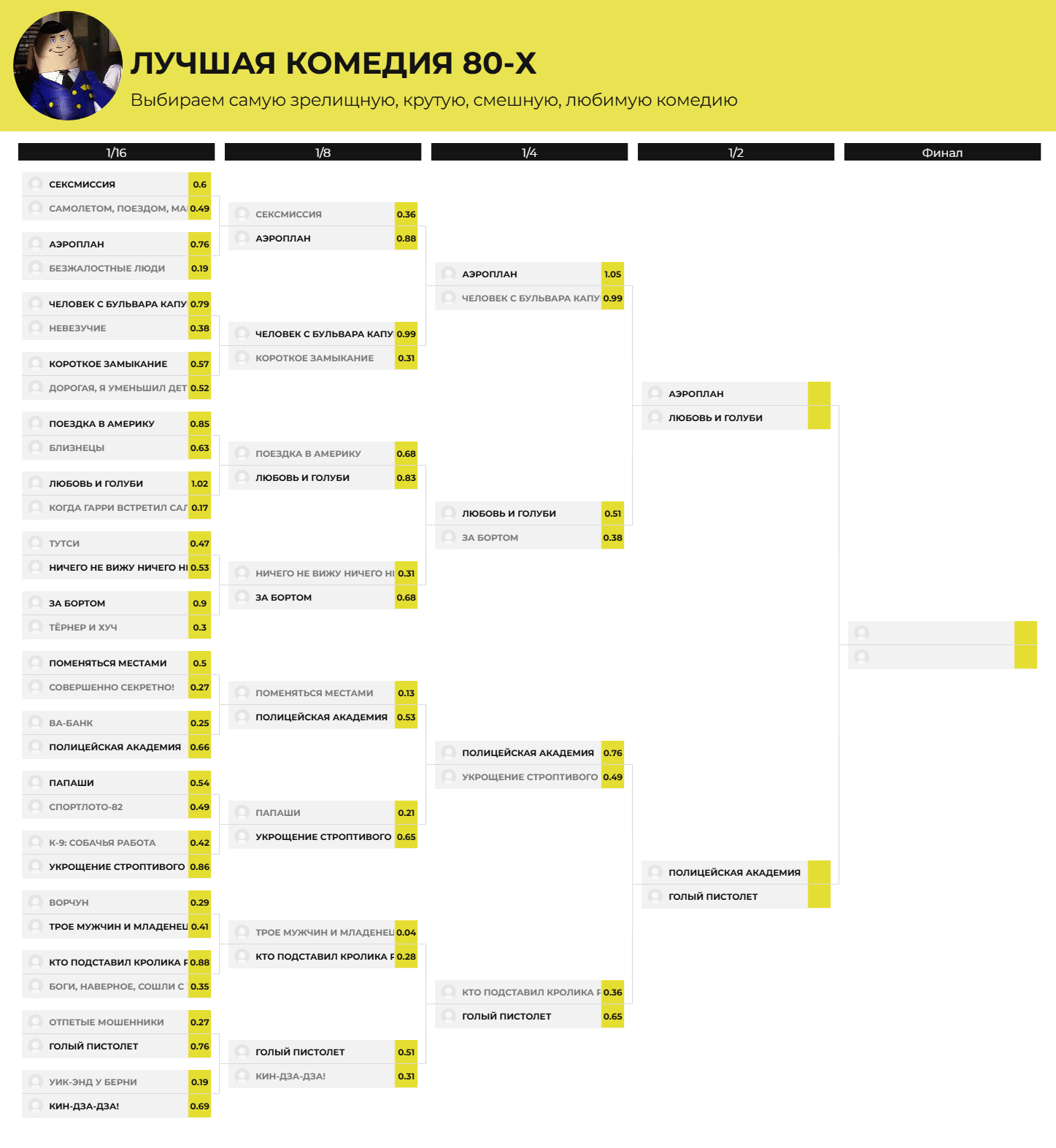 Лучшая комедия 80-х. 1/4 финала. Предварительные итоги голосования