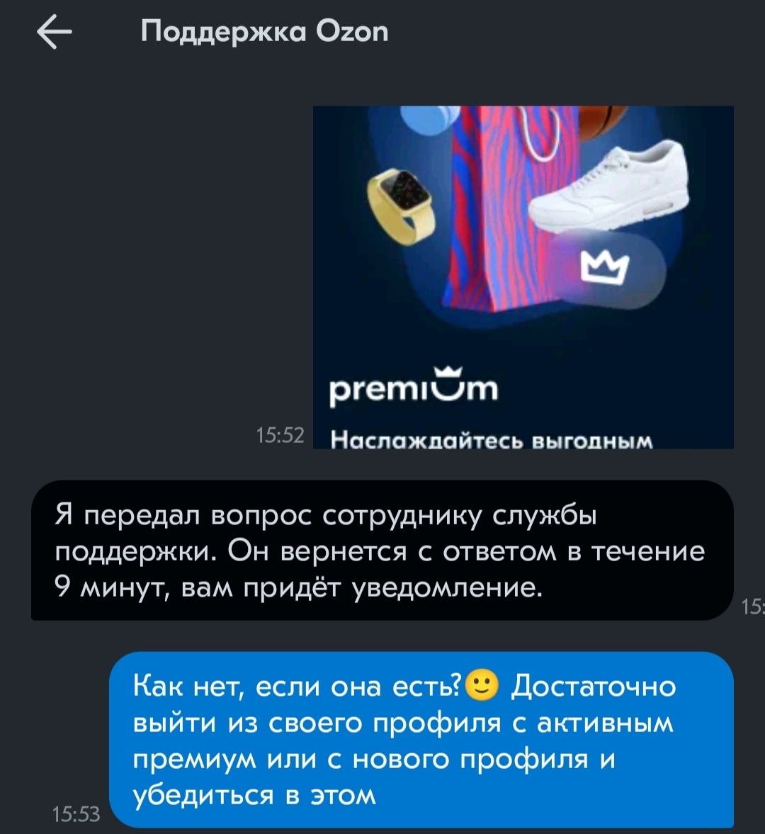 Всегда обходил Озон стороной, но нашел там нужный мне товар по хорошей цене. Зарегистрировался, привязал карту, увидел предложение, что можно оформить премиум за рубль на месяц. Оформил. Но только списали у меня полную стоимость, а не 1 рубль. Решил написать в поддержку и понеслось.