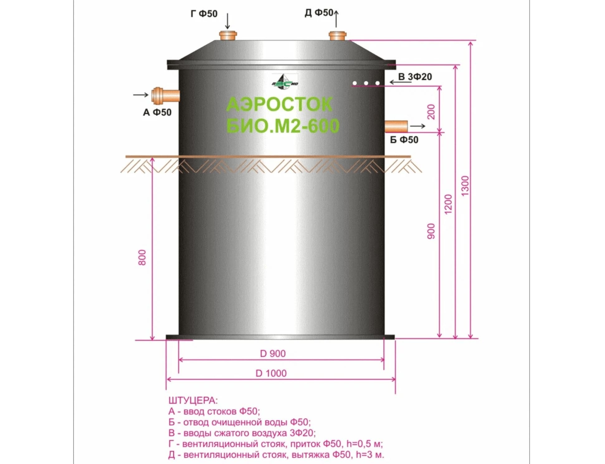 Характеристики: очистка хозяйственно-бытовых стоков, не требует электричества.