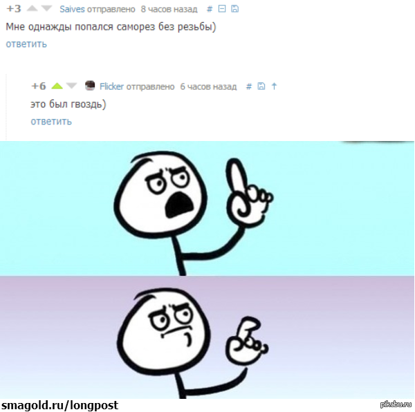 816 Pianist0805 Лучше шуруп, забитый молотком, чем гвоздь, завернутый отверткой… 11 лет назад Вот такой экземпляр попался в упаковке саморезов [моё] Гвозди Саморез Инструменты