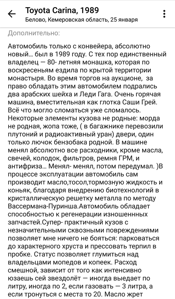 Лучшее описание автомобиля