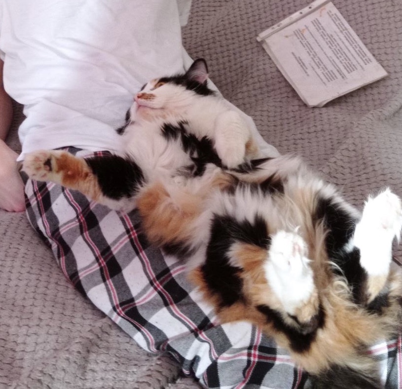 Какая учеба? Какие уроки? Самое приятное и полезное занятие - гладить мою прекрасную шубку и пузцо )