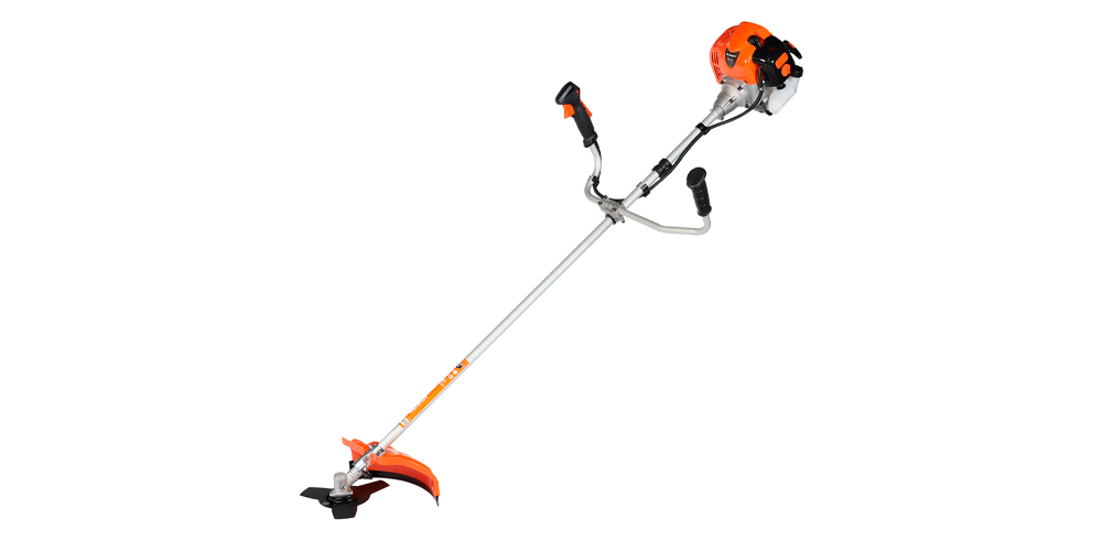 Как и прочие участники, триммер работает на смеси бензина и масла. Топливный бак достаточно большой – на 1,2 л, что позволяет длительное время работать без дозаправки. Эргономичные рукоятки регулируются для удобства хвата. Органы управления вынесены на ручку. Курок снабжен блокирующей системой от случайного нажатия.
