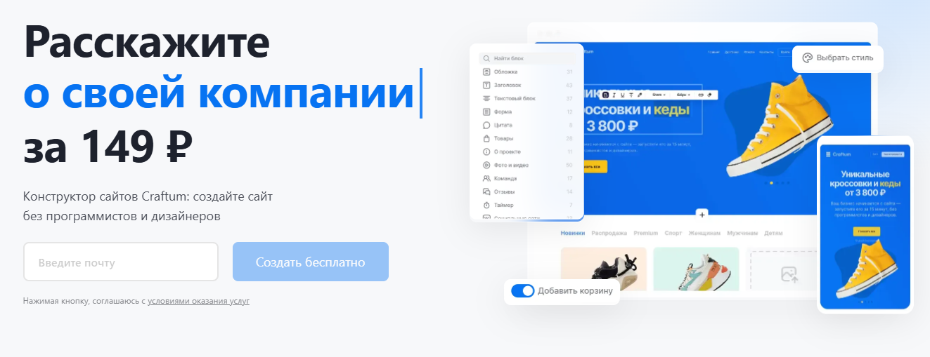 Craftum + AI — платформа для сайтов со встроенным ИИ, который подстраивает контент под пользователей.