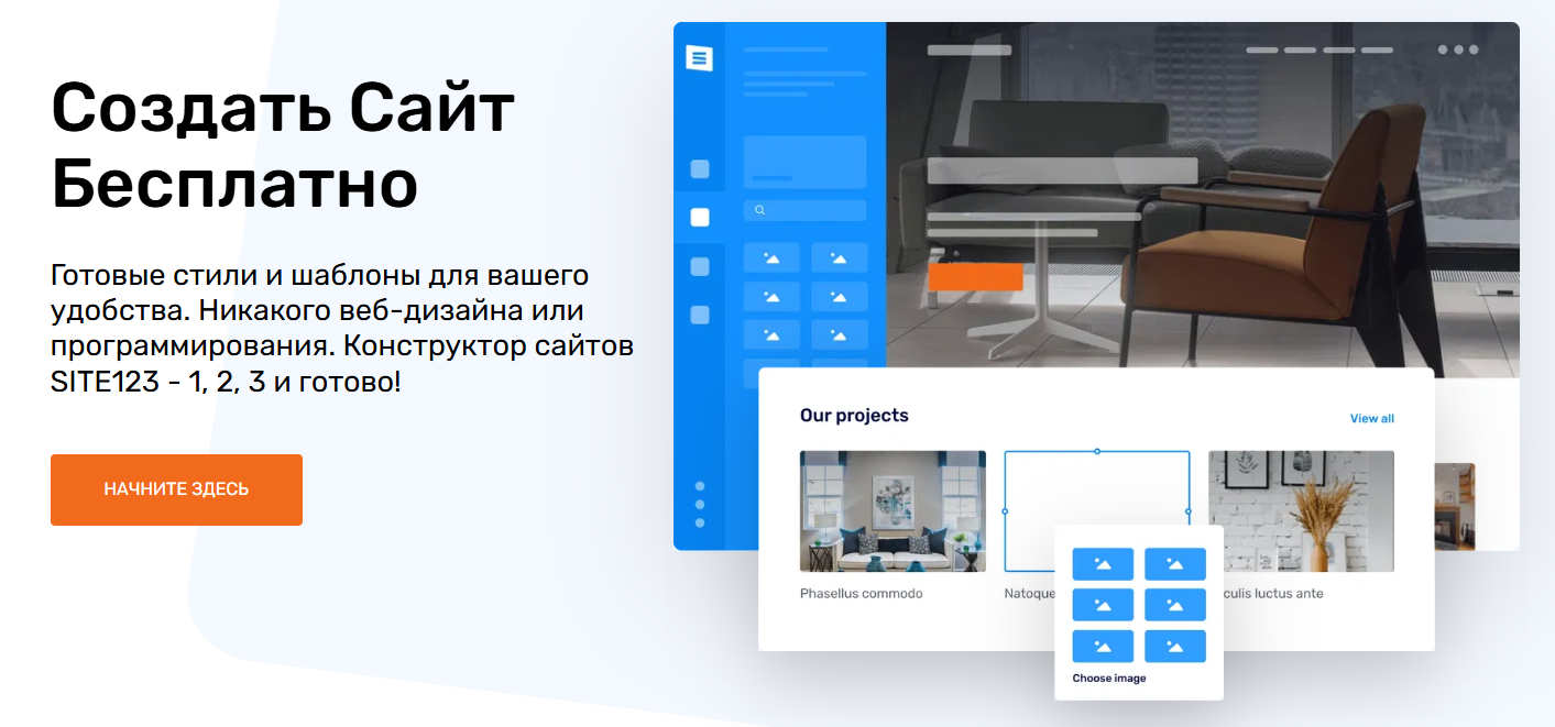Site123 — сервис для быстрого создания первого сайта без необходимости в специальных навыках.