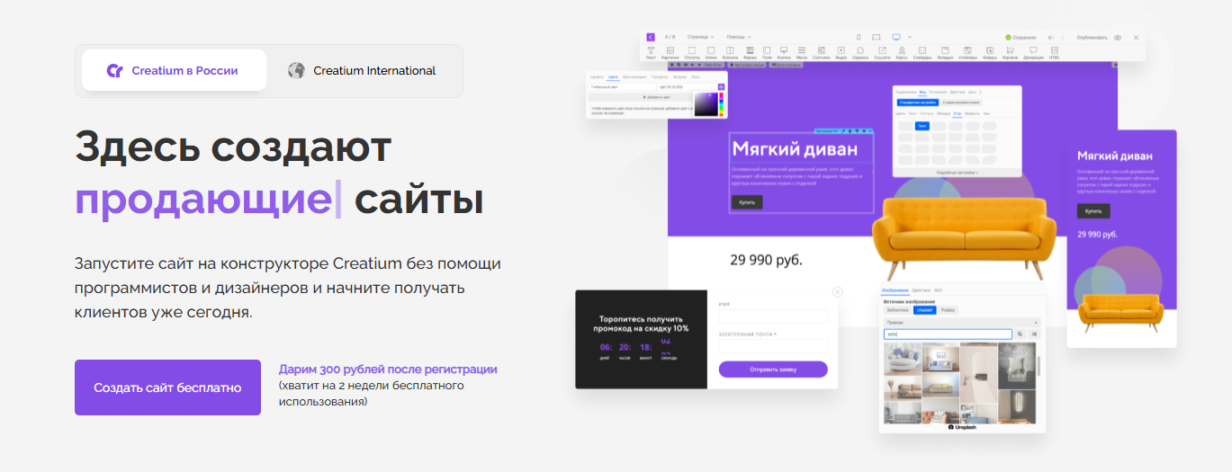 Creatium — конструктор сайтов с готовыми блоками для быстрой сборки страниц.
