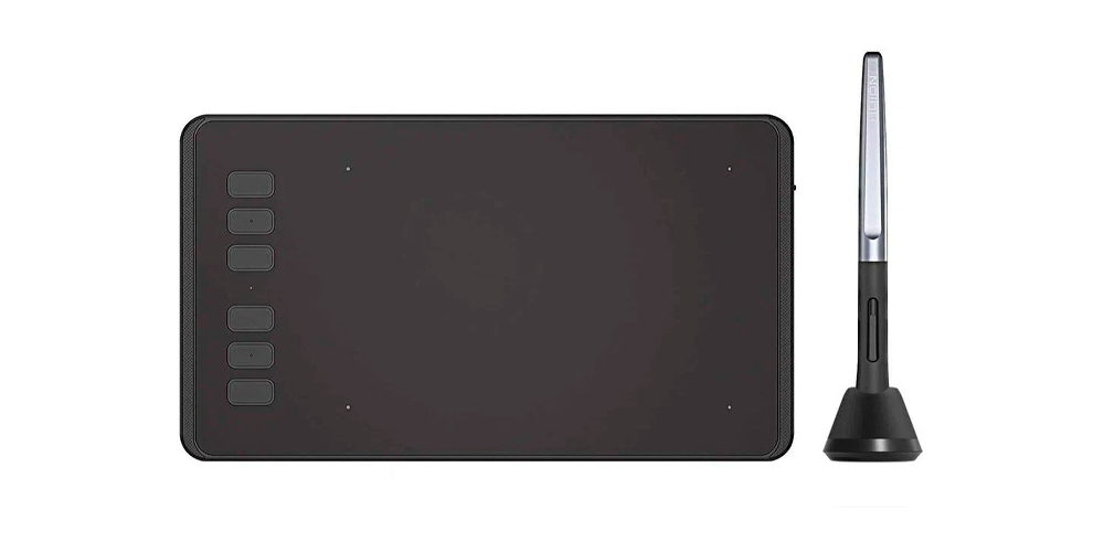 Четвертое место рейтинга занимает HUION Inspiroy H640P. Тут есть 6 кнопок по левой стороне. Кому-то удобно назначить на них отмену действия, переключение между инструментами или ещё какую команду. В общем, комфорта прибавляет при правильной настройке. А то тех нескольких кнопок на стилусе может не хватать.