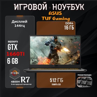 Asus TUF Gaming FA506 — восстановленный игровой ноутбук с процессором AMD Ryzen 7 4800H (8 ядер, до 4.2 ГГц) и видеокартой GTX 1660Ti (6 ГБ). 16 ГБ DDR4 и SSD на 512 ГБ обеспечивают хорошую производительность. Экран 15.6" Full HD 144 Гц.