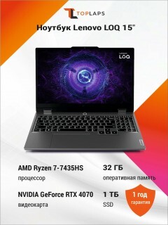 Lenovo LOQ 15ARP9 — игровой ноутбук с процессором AMD Ryzen 7 7435HS (8 ядер, до 4.5 ГГц) и видеокартой RTX 4070 (8 ГБ). 32 ГБ DDR5 и SSD на 1 ТБ обеспечивают высокую скорость. Экран 15.6" Full HD 144 Гц с Windows 11.