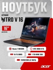 Acer Nitro V 16 оснащён процессором AMD Ryzen 7 8845HS (8 ядер, до 5.1 ГГц) и видеокартой RTX 4060 (8 ГБ). 16 ГБ DDR5 и SSD на 1 ТБ обеспечивают быструю работу. Экран 16" WQXGA (2560x1600) с частотой 165 Гц.