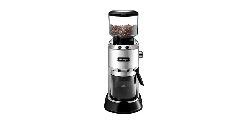 De’Longhi KG 520.M: Надежный выбор с 18 степенями помола, мощность 150 Вт. Подходит для дома, если важно готовить разные типы напитков: эспрессо, френч-пресс, капельная кофеварка.