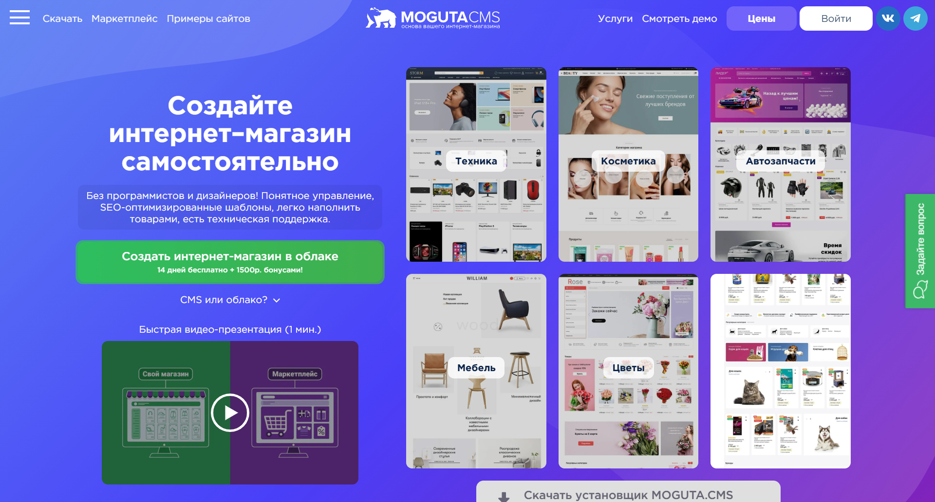 Готовые решения для интернет-магазинов, сайтов услуг и визиток.