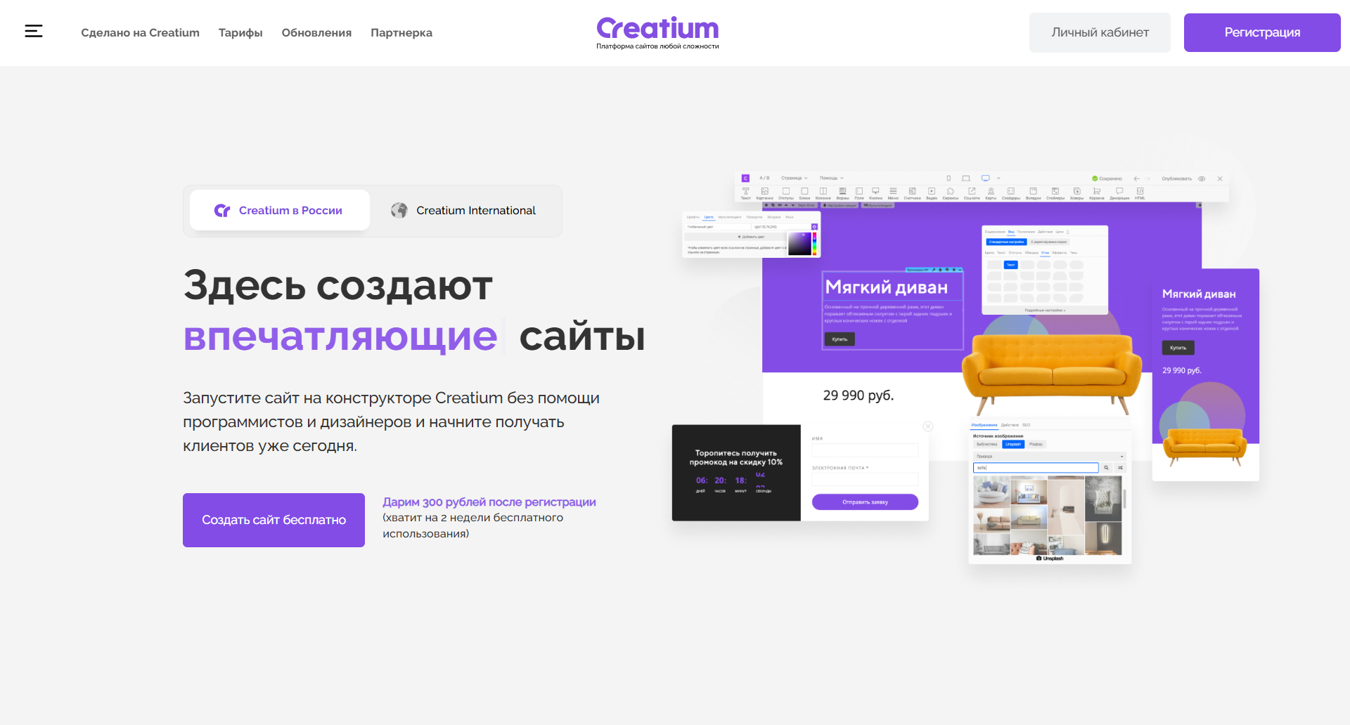 Creatium — визуальный конструктор сайтов и онлайн-сервисов