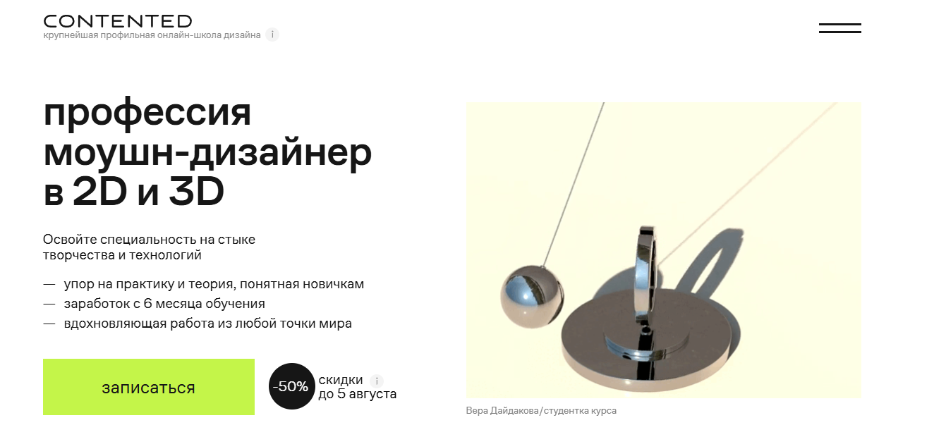 Профессия моушн-дизайнер в 2d и 3d от Contented.ru — возможность зарабатывать через шесть месяцев обучения.