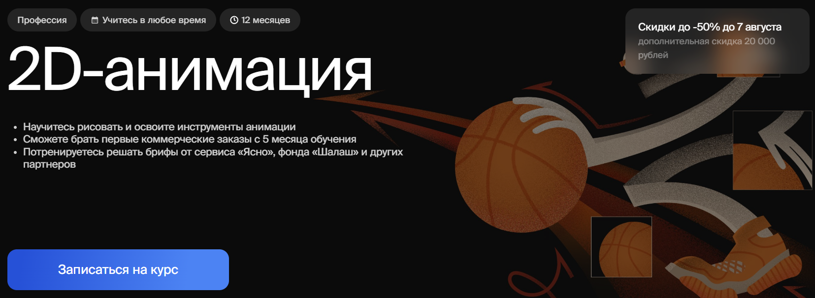 Специализированные онлайн-курсы по 2D-анимации — ваш инструмент для фокуса на конкретных техниках: от экспресс-анимации персонажей до стилизации под ретро. Они дополнят базовые знания, раскрывая нюансы моушн-дизайна или работы с редкими инструментами. Такие варианты полезны для точечной прокачки навыков, когда основные этапы уже пройдены. Идеально для тех, кто хочет выделиться в нише или освоить узконаправленные анимационные приемы.
