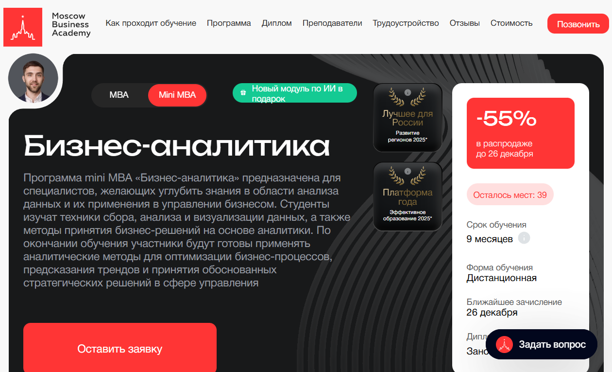 19. МВА по бизнес-аналитике — Moscow Business Academy