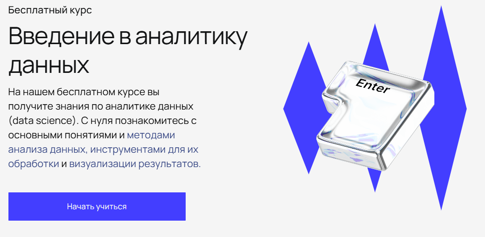 Особенности обучения: курс дает представление о требованиях рынка и позволяет оценить перспективы разных аналитических профессий. Подходит для осознанного выбора дальнейшего обучения.