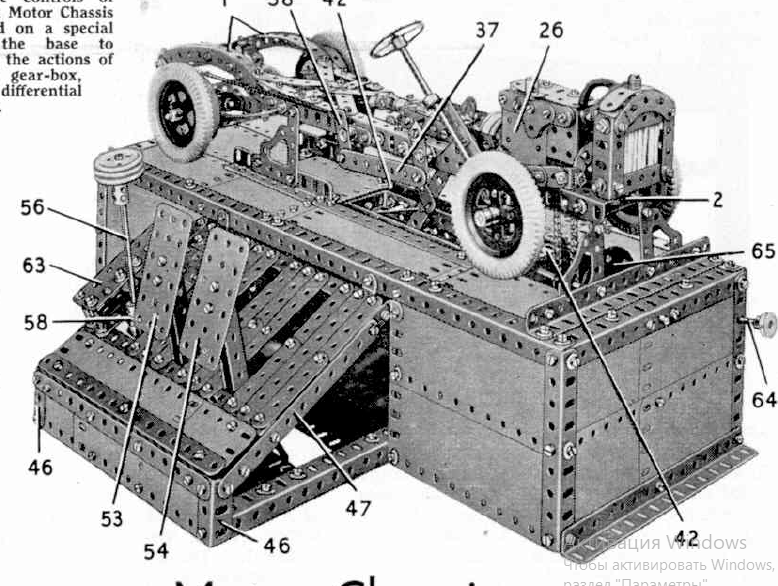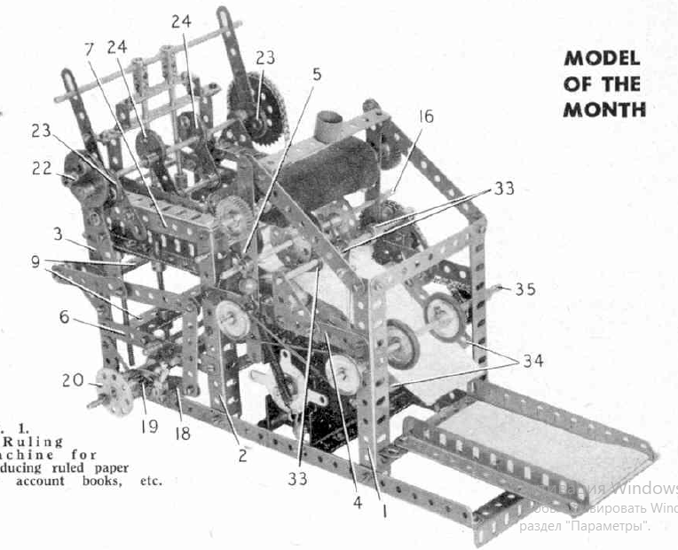 Продолжаем изучать материалы исходника, с которого создавался советский металлический конструктор- это наборы Английской фирмы MECCANO, популярные до сих пор. В их журналах для детей иногда мелькали реально безумные и шедевральные варианты сборок. Отметим, что и деталей для сборки требовалась масса, иногда даже не совсем стандартных.
