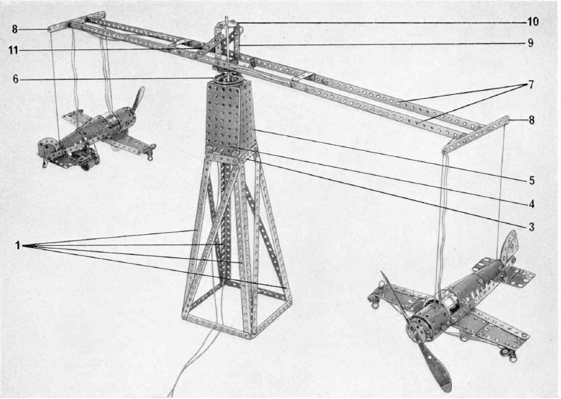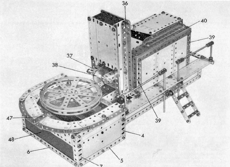 Продолжаем изучать материалы исходника, с которого создавался советский металлический конструктор- это наборы Английской фирмы MECCANO, популярные до сих пор. В их журналах для детей иногда мелькали реально безумные и шедевральные варианты сборок. Отметим, что и деталей для сборки требовалась масса, иногда даже не совсем стандартных.