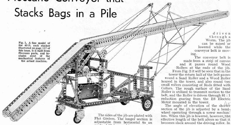 Продолжаем изучать материалы исходника, с которого создавался советский металлический конструктор- это наборы Английской фирмы MECCANO, популярные до сих пор. В их журналах для детей иногда мелькали реально безумные и шедевральные варианты сборок. Отметим, что и деталей для сборки требовалась масса, иногда даже не совсем стандартных.