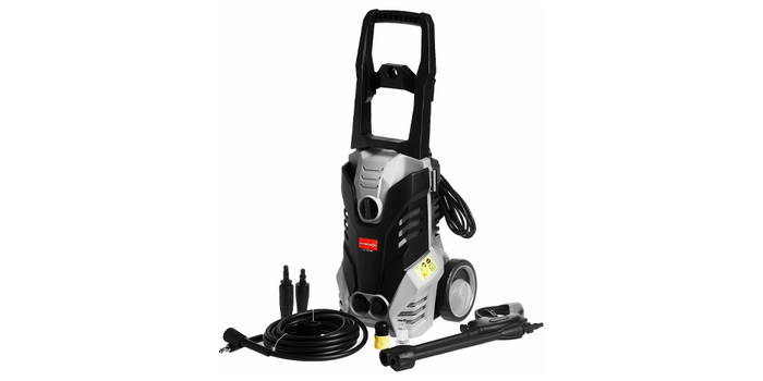 Надежная алюминиевая помпа создает повышенное рабочее давление, которое может достигать 170 бар. Расход воды составляет 375 л/ч. Подключение возможно к водопроводу или можно организовать забор воды из емкости. В комплекте есть фильтр для защиты от засора. Пистолет-распылитель наделен защитой от случайного пуска. В целом, достойный недорогой вариант с хорошими рабочими показателями.