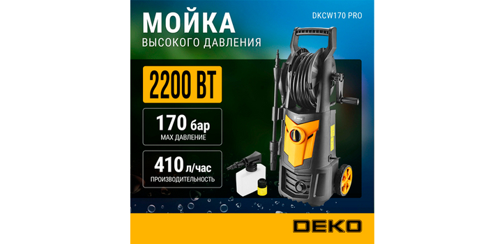 На пятой строчке расположилась самая бюджетная мойка рейтинга — DEKO DKCW170 PRO, которая, несмотря на ценник, обладает отличными рабочими характеристиками: мощностью 2200 Вт, давлением в 130 бар с максимальным параметром 170 бар и высокой производительностью — 410 л/ч.