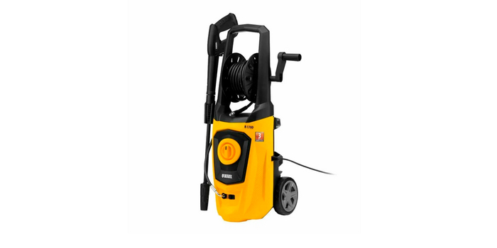 На четвертой строчке рейтинга стоит DAEWOO DAW 550 – мойка высокого давления повышенной мощности и производительности. Она выполнена в эргономичном дизайне, оборудована катушкой для наматывания шланга, длина которого составляет 8 м. Алюминиевая помпа создает высокое давление до 180 бар и скорость потока в 550 л/час, — это один из лучших показателей рейтинга.
