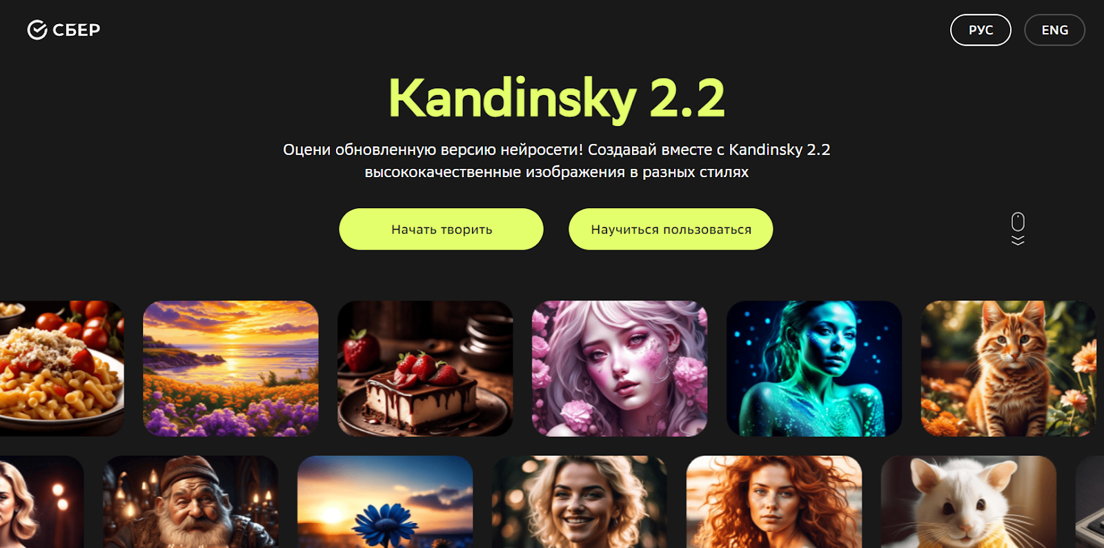 Плюс платформы – возможность начать работу без регистрации. В результате пользовать сразу сможет оценить все функции системы. Нейросеть полностью русифицирована. Чтобы работать с ней, не нужно знать английский язык. Все команды можно давать в привычной форме, что упрощает процесс генерации изображений.