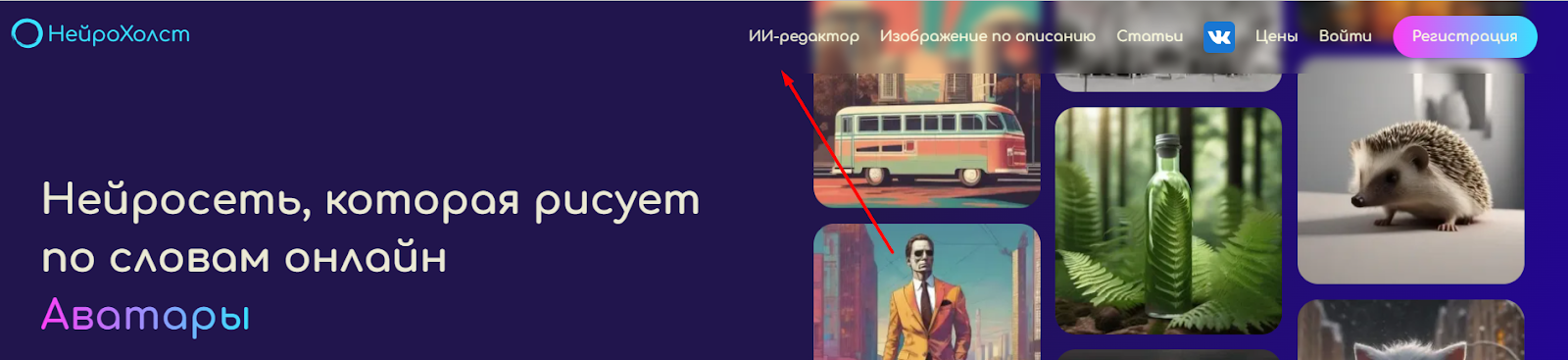 Перейти в ИИ редактор. Для этого нужно нажать на одноименный пункт в верхнем меню системы.