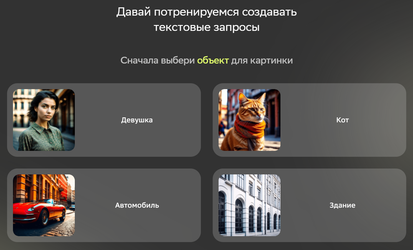 Перед тем, как начать творить, пользователь может научиться работать с системой. Для этого предусмотрена внутренняя программа обучения. Следуя подсказкам, пользователь создаст свое первое изображение с помощью нейросети.
