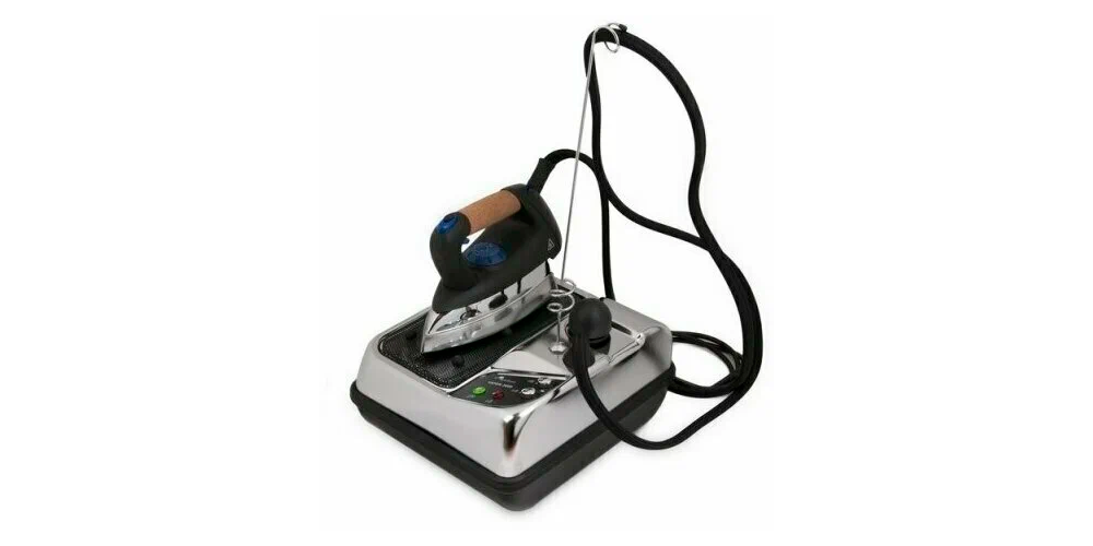 Открывает рейтинг профессиональный утюг с парогенератором мощностью 1,8 кВт, изготовленный из нержавеющей стали. Подходит как для дома, так и для ателье. Утюг нагревается до 215°C, с регулировкой температуры для различных тканей. Парогенератор мощностью 1 кВт подает пар под давлением 2,5-5,5 бар, обеспечивая качественное глажение. Устройство поддерживает вертикальное и горизонтальное отпаривание, хотя паровой удар отсутствует. Индикаторы сообщают о готовности пара и уровне воды.