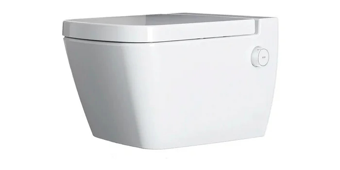 Замыкает наш топ подвесной унитаз-биде TECE One 9700200, который сочетает современные технологии и удобство эксплуатации. Габариты чаши — 36 см в ширину и 53 см в глубину — позволяют установить его даже в небольших ванных комнатах. Вес конструкции 27 кг, что делает монтаж на инсталляцию удобным, при этом прочность крепления рассчитана на нагрузку до 400 кг. Три уровня регулировки напора воды обеспечивают персональный комфорт пользователям, а эргономичный рычаг управления на боковой панели позволяет менять температуру и интенсивность струи в пределах 15 градусов. Система подачи воды работает без электроники, что исключает необходимость подключения к сети и снижает вероятность поломок.