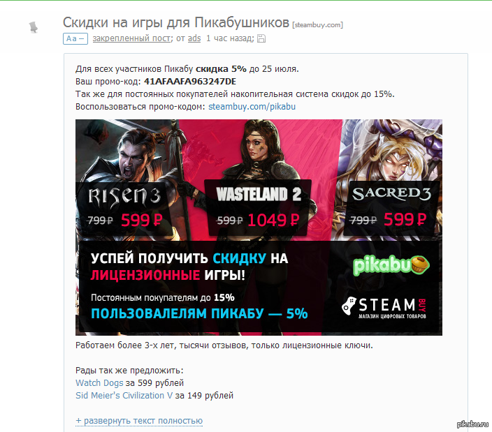 FullStein Лучшие скидки для пикабушников 11 лет назад Тест на внимательность Реклама Пикабу Скидки Подвох
