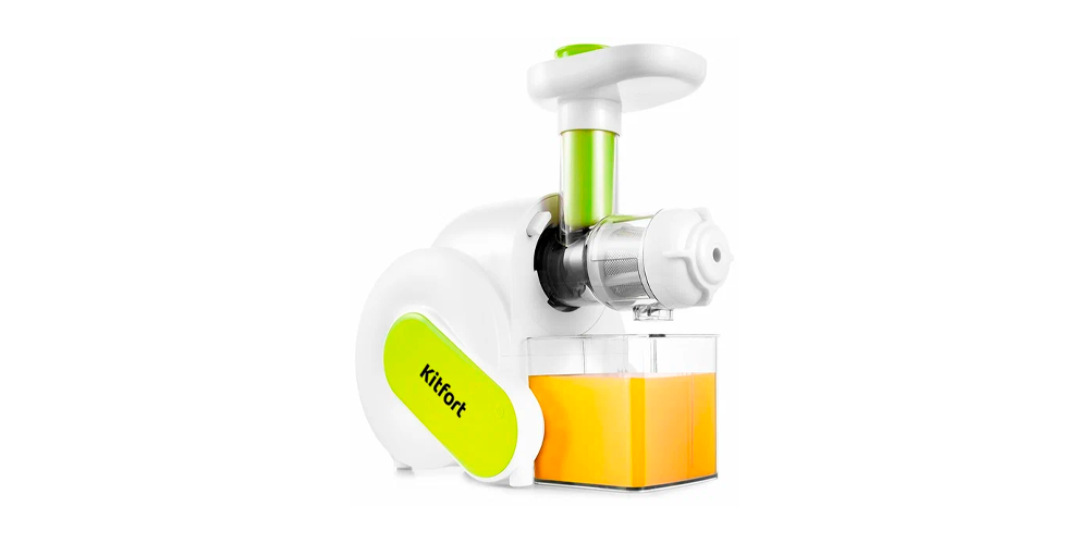Популярная модель: Kitfort KT-1132 — горизонтальная шнековая соковыжималка, которая отлично справляется с морковью, сельдереем и яблоками.