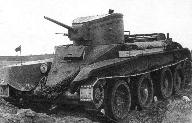 1932-1933г. БТ-2 - первый из серии быстроходных танков, предназначенный для "Глубокой наступательной операции". Был создан на базе танка американского конструктора Уолкера Кристи. Имел запредельную для танка удельную мощность 36,2лс/т и возможность передвижения на колесах по твердым дорогам (колесная формула 8*2). Всего произведено 620 танков БТ-2.
