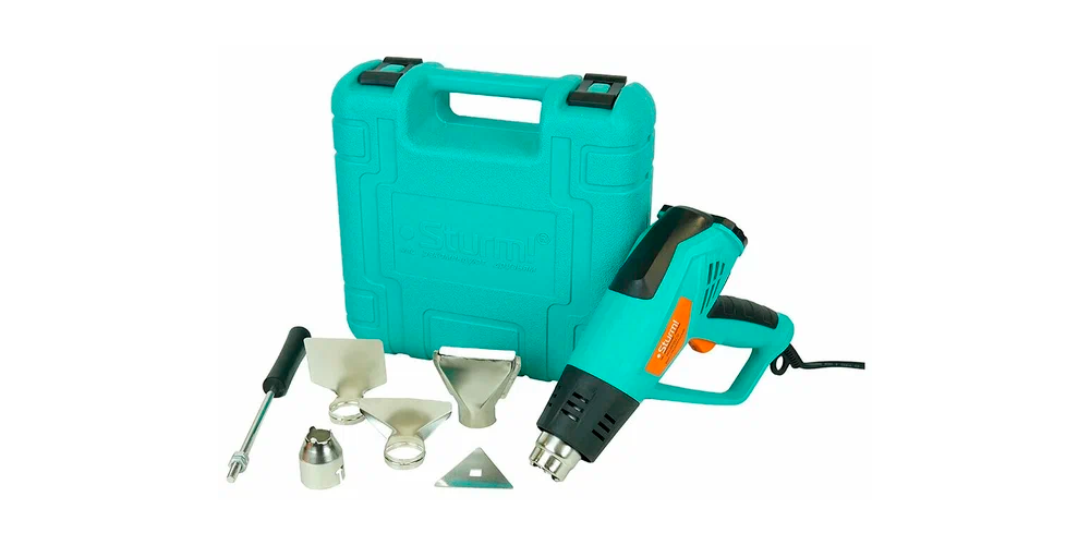Следующая модель в рейтинге Sturm! HG2003LCD Case — двухкиловатный строительный фен с интересным дизайном и функциональностью. Он имеет кнопочную регулировку скорости с шестью уровнями и возможность независимой настройки температуры, что позволяет выбрать максимальный нагрев при минимальном потоке воздуха.