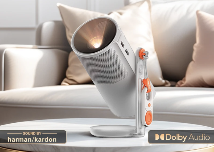 Устройство поддерживает Wi-Fi и Bluetooth для подключения к смартфонам и ноутбукам. Проектор работает от встроенного аккумулятора, что удобно для поездок. Звук воспроизводится встроенными динамиками высокого качества.