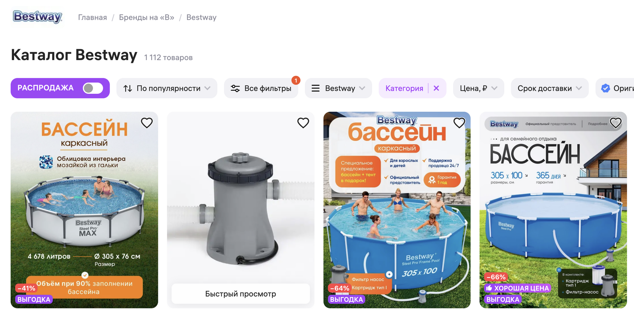 Wildberries предлагает широкий выбор каркасных бассейнов от бренда Bestway — одного из лидеров в мире сезонных товаров для отдыха. Удобный онлайн-каталог позволяет быстро подобрать подходящую модель для дачи или загородного участка.