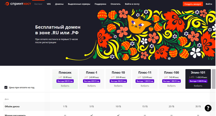 SprintHost — быстрый хостинг с гибкими тарифами от 99 ₽/месяц