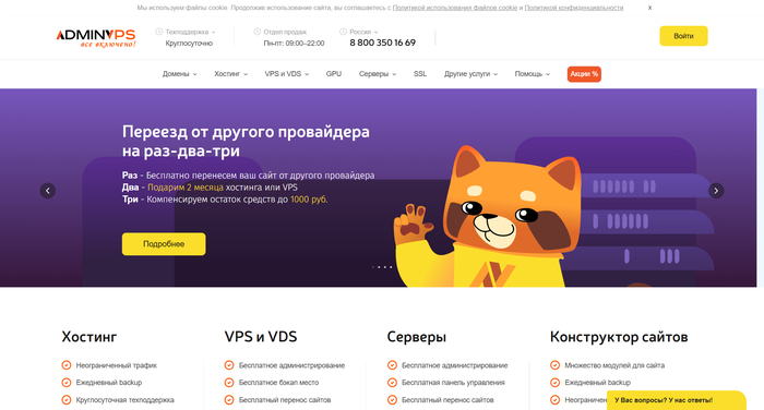 AdminVPS предлагает широкий спектр услуг для размещения сайтов, включая виртуальный хостинг, VPS и выделенные серверы. Компания ориентирована на предоставление решений, которые подходят как для небольших проектов, так и для высоконагруженных ресурсов с повышенными требованиями к производительности и безопасности.