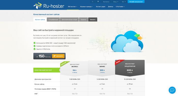 RU-Hoster - виртуальный хостинг от 150 ₽/месяц