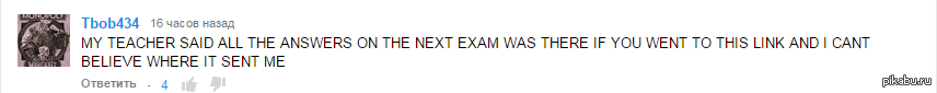 12 ZIGGYY 10 лет назад Лучший препод. =) Комментарий под видео Рика Эстли. Перевод : "Мой препод сказал мне, что все ответы на экзамен я могу найти в видео по ссылке" Комментарии Never Gonna Give You Up Rick Astley