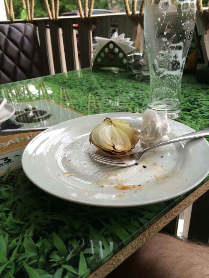 CaseyMeeko Лука к шашлыку не хотите? 9 лет назад Захотели к шашлыку заказать дополнительно лук за 40 рублей в одной нижегородской кафешке. Вот что получили.Половина обгоревшей луковицы. Половина, Карл!Ладно хоть не за 100 рублей [моё] Лук Лучок Кафе Цены Длиннопост
