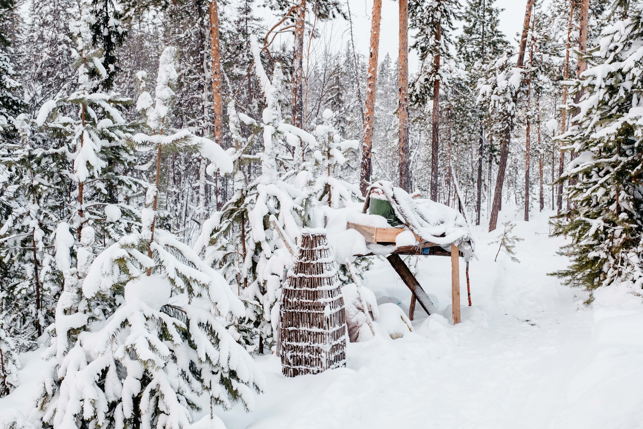 В этом стойбище одновременно есть здания и из зимнего и из летнего стойбищ. Так что очень легко увидеть все в одной локации и не мчать на снегоходах по лесу.
